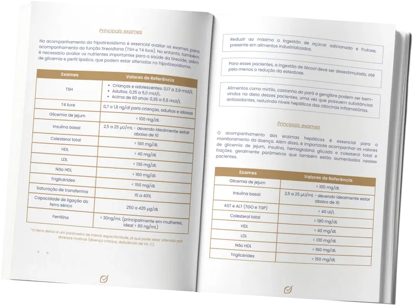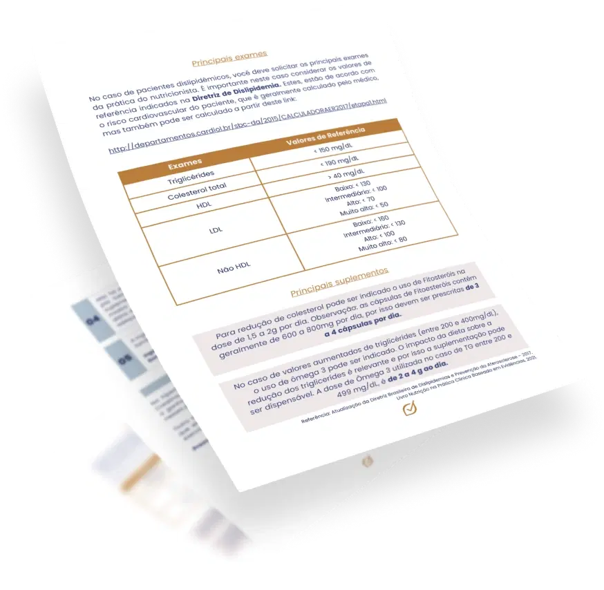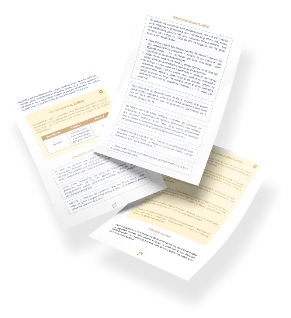 Tenha acesso ao guia completo com a conduta nutricional indicada para mais de 30 patologias.