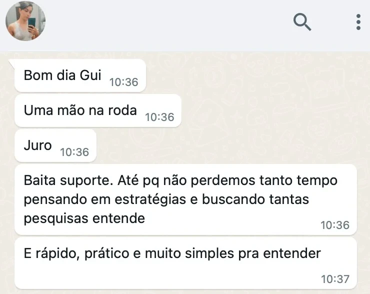 Se em 07 dias você achar que o material não é para você ou que você ainda não está pronta(o) para ter todo o conhecimento que será passado, basta entrar em contato com o nosso time que reembolsaremos 100% do seu dinheiro e removeremos o seu acesso ao conteúdo.